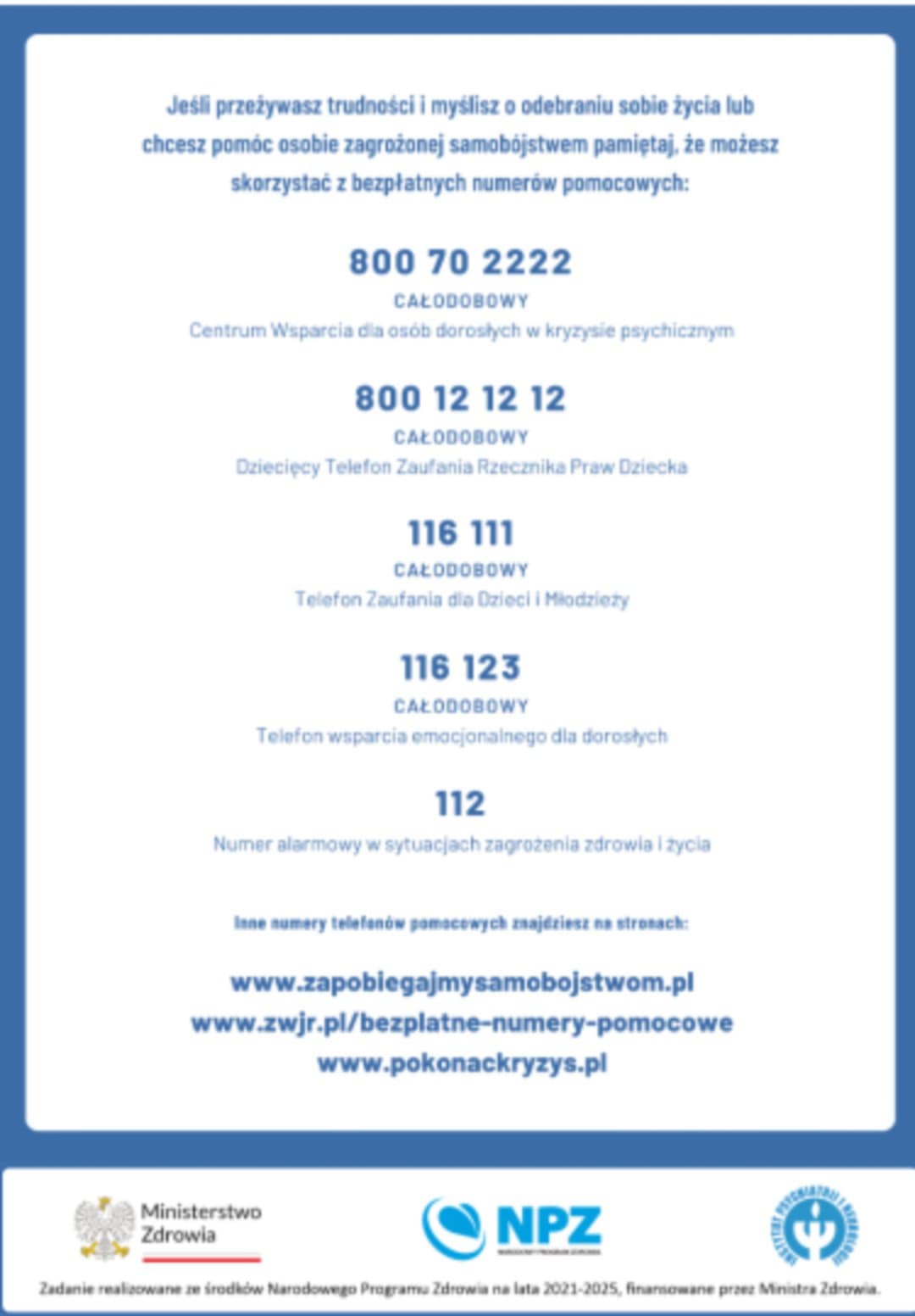 📞 Całodobowa linia wsparcia dla dorosłych – 116 123