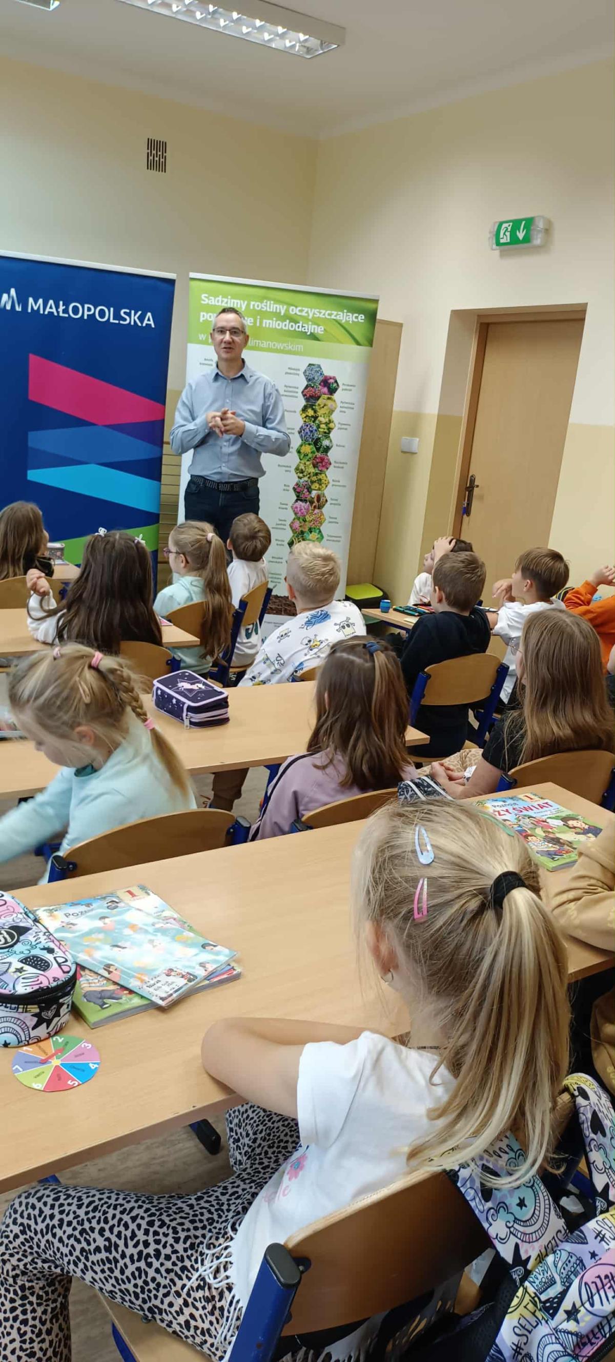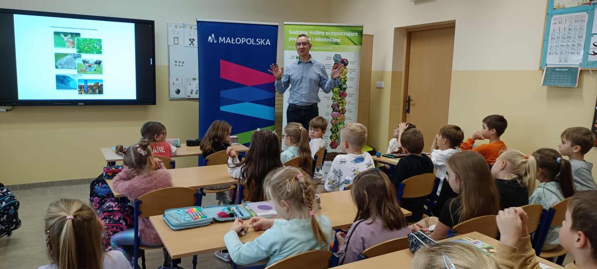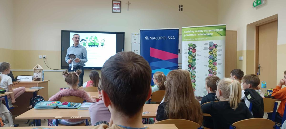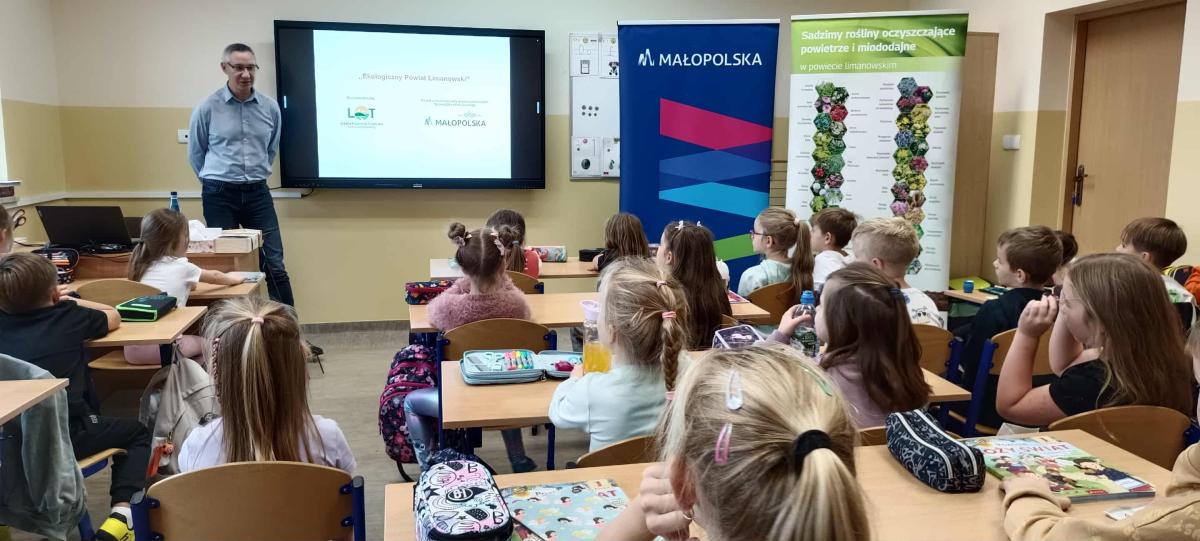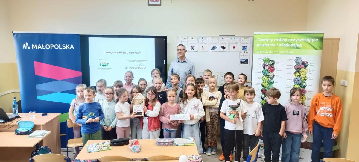 15 września 2025r. uczniowie klasy pierwszej i drugiej mieli okazję uczestniczyć w wyjątkowych zajęciach na temat ekologii. Podczas warsztatów uczniowie rozmawiali o segregacji śmieci, oszczędzaniu wody i energii, bioróżnorodności, czystości i jakości powietrza. Podczas zajęć uczniowie dowiedzieli się, jak ważne jest dbanie o naszą planetę i jak każdy z nas może przyczynić się do ochrony środowiska. Zajęcia zostały zorganizowane i przeprowadzone w ramach realizacji zadania publicznego pn. "Ekologiczny Powiat Limanowski - edycja 2025".