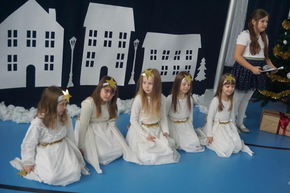 Uroczystość rozpoczęła się serdecznym powitaniem gości przez pana dyrektora Mieczysława Tokarczyka. Następnie uczniowie z wielkim zaangażowaniem wystąpili i zaprezentowali przygotowane przedstawienie. Szczególnym elementem występu był teatr cieni, który w nastrojowy i symboliczny sposób ukazał sceny z Betlejem.