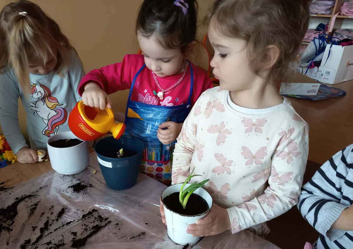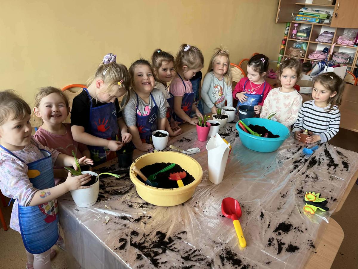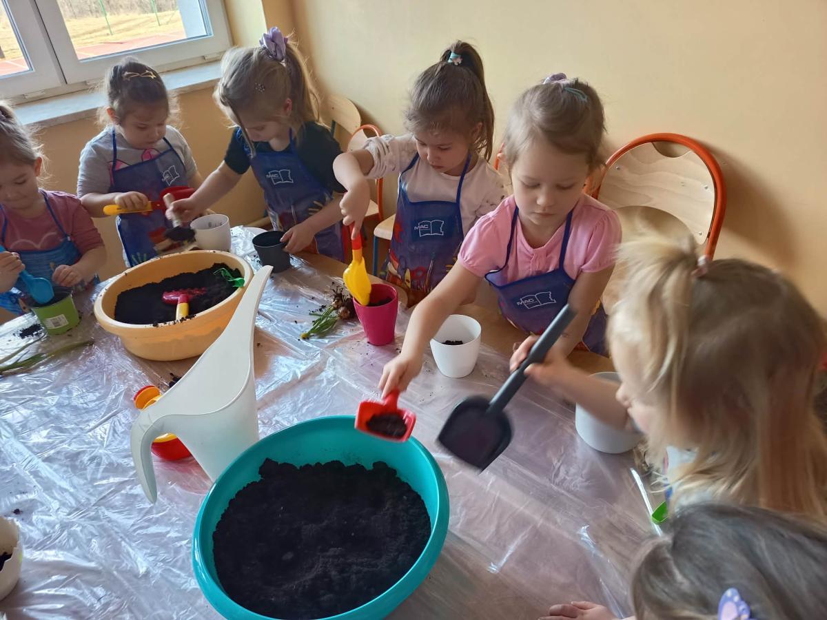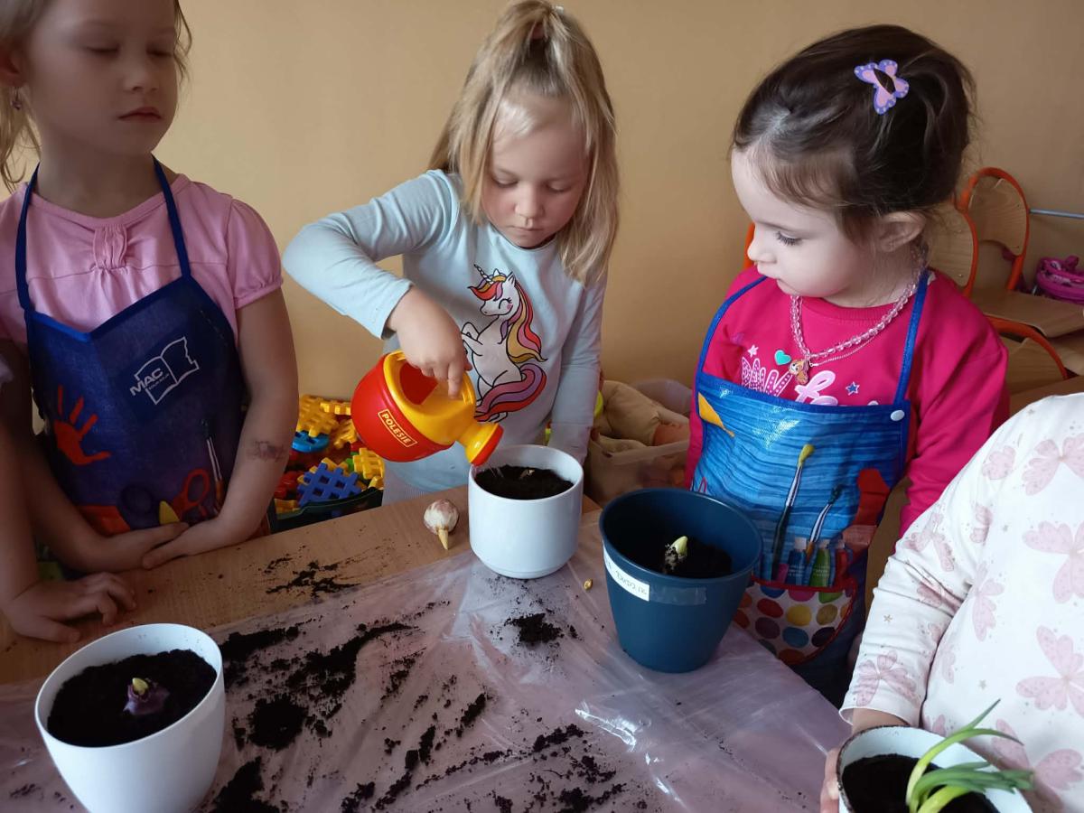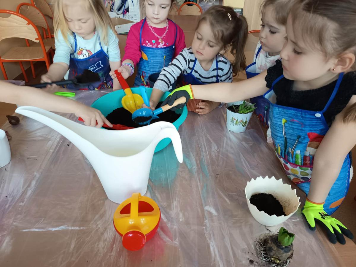 Podczas zajęć 3,4- latki posadziły w doniczkach cebulki wiosennych kwiatów. Mali ogrodnicy pracowali z wielkim entuzjazmem i zainteresowaniem. Teraz będziemy wspólnie dbać o sadzonki i czekać na efekty pracy małych rączek :-)