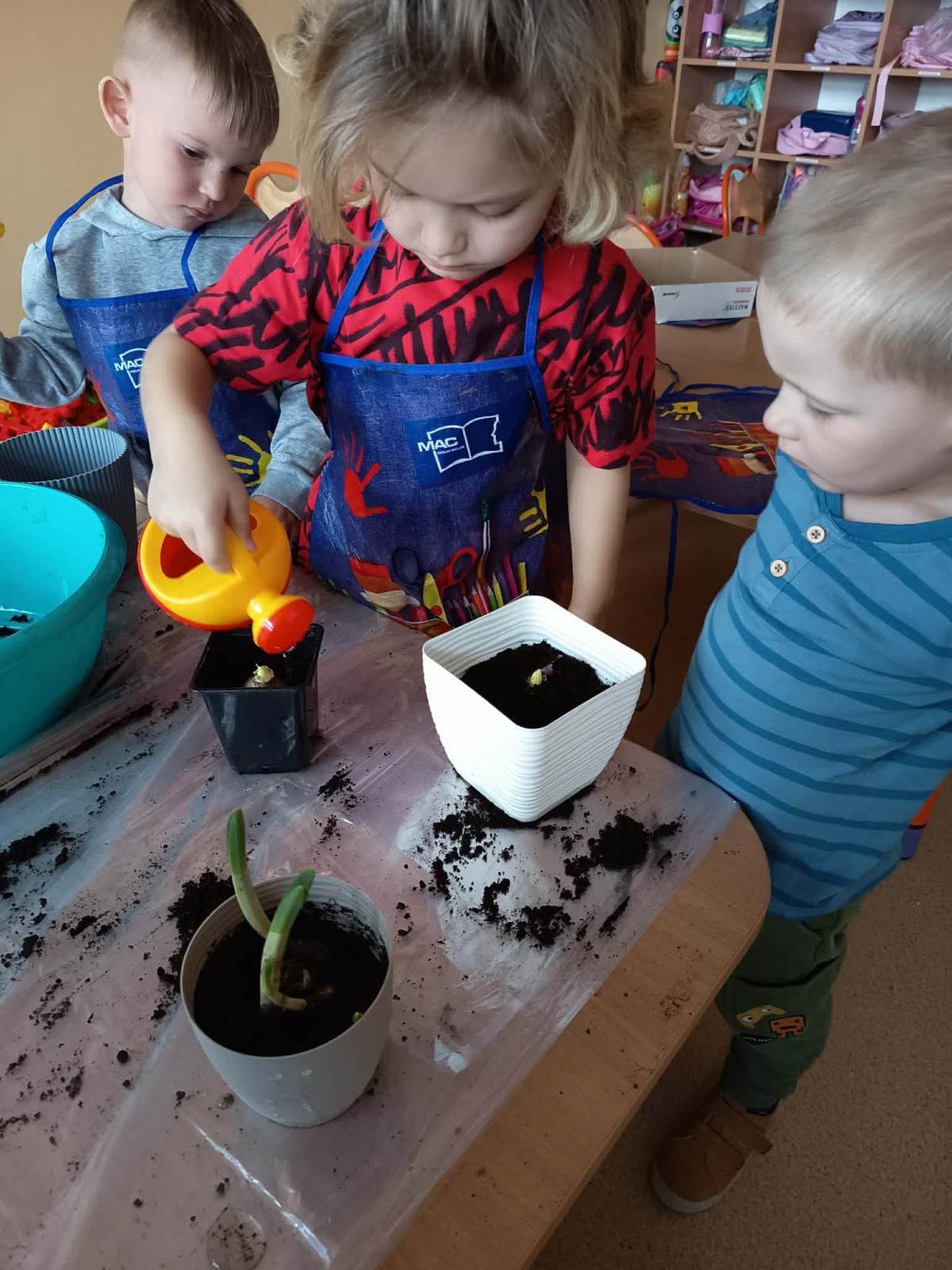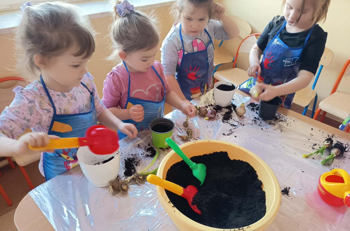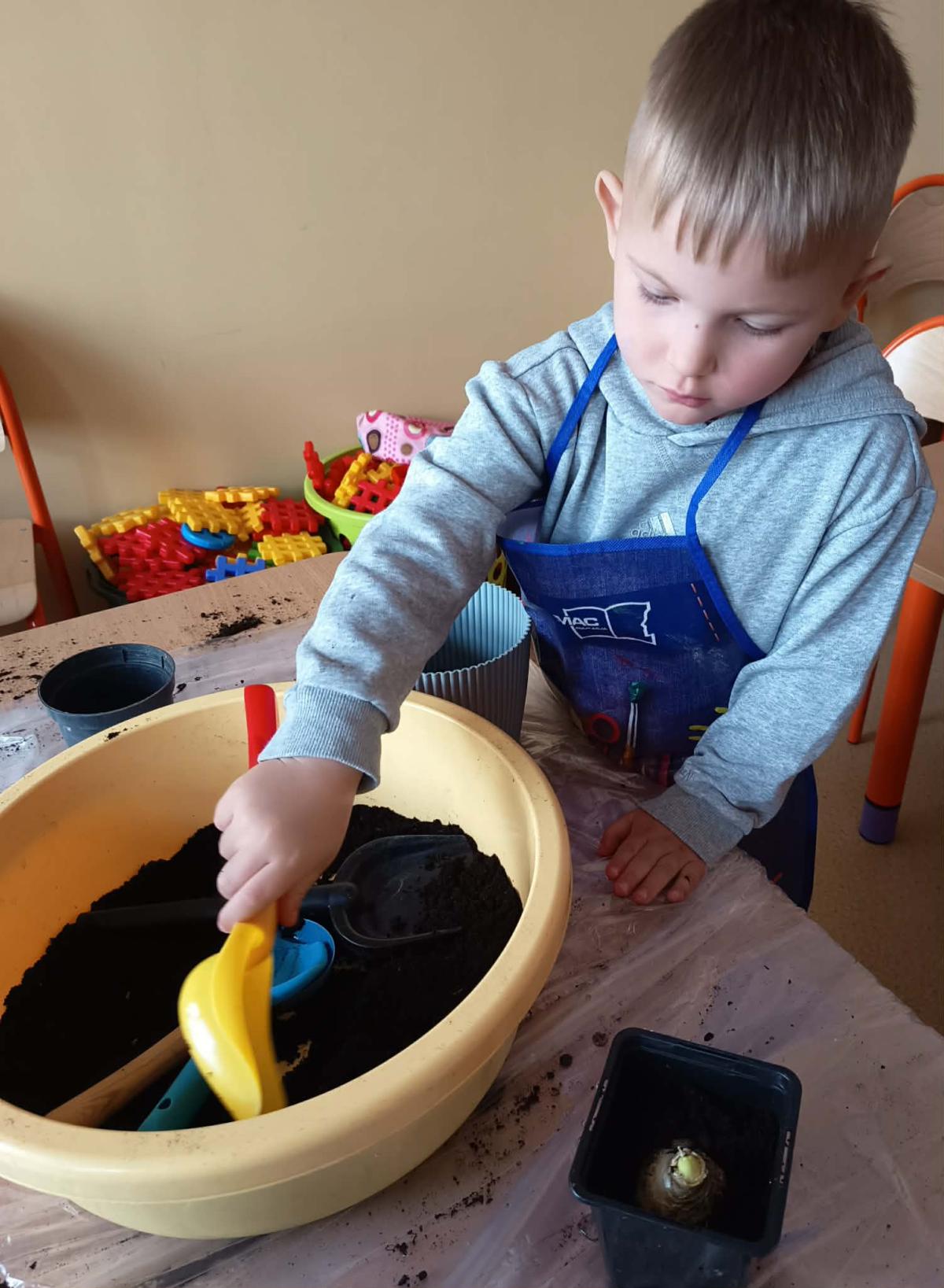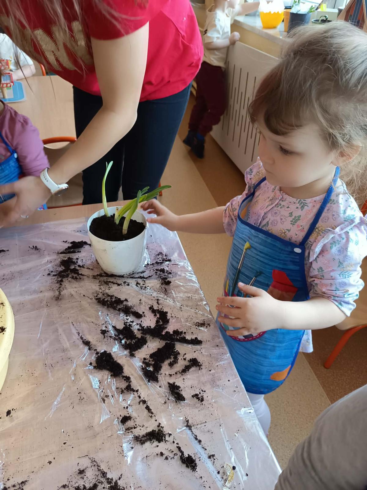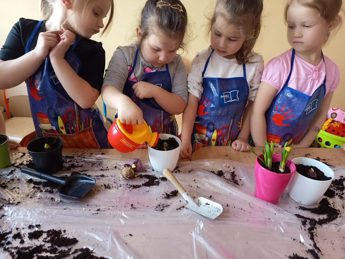 Podczas zajęć 3,4- latki posadziły w doniczkach cebulki wiosennych kwiatów. Mali ogrodnicy pracowali z wielkim entuzjazmem i zainteresowaniem. Teraz będziemy wspólnie dbać o sadzonki i czekać na efekty pracy małych rączek :-)