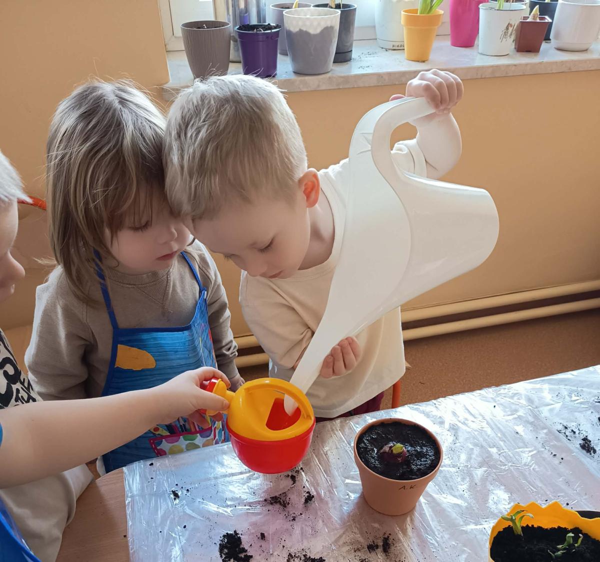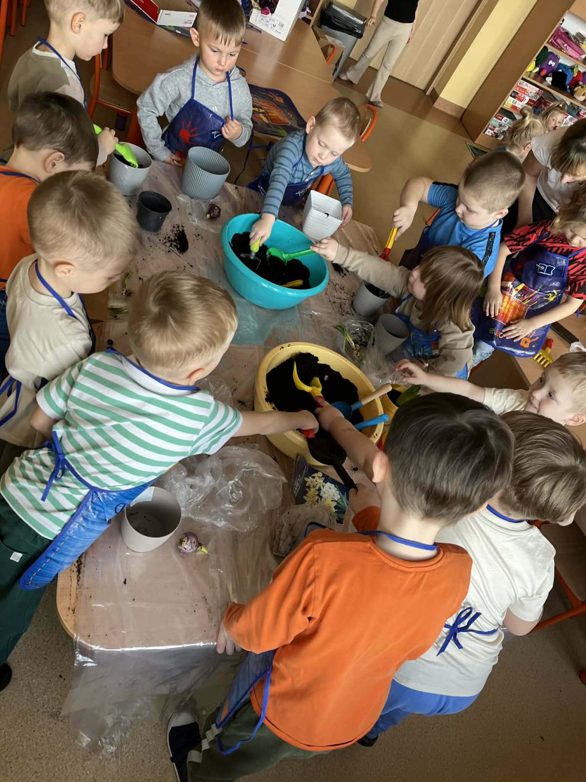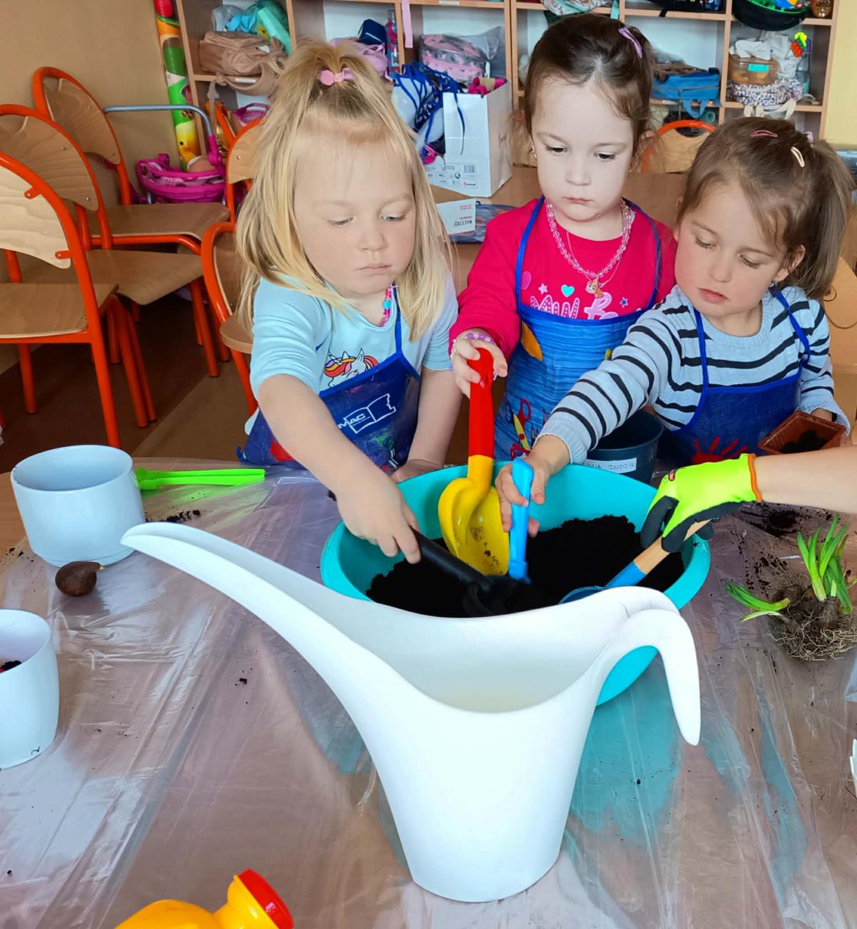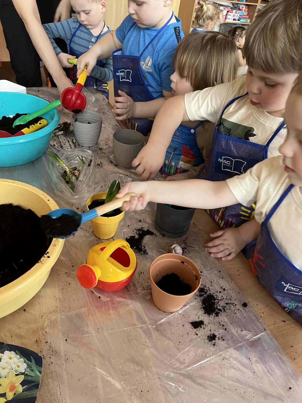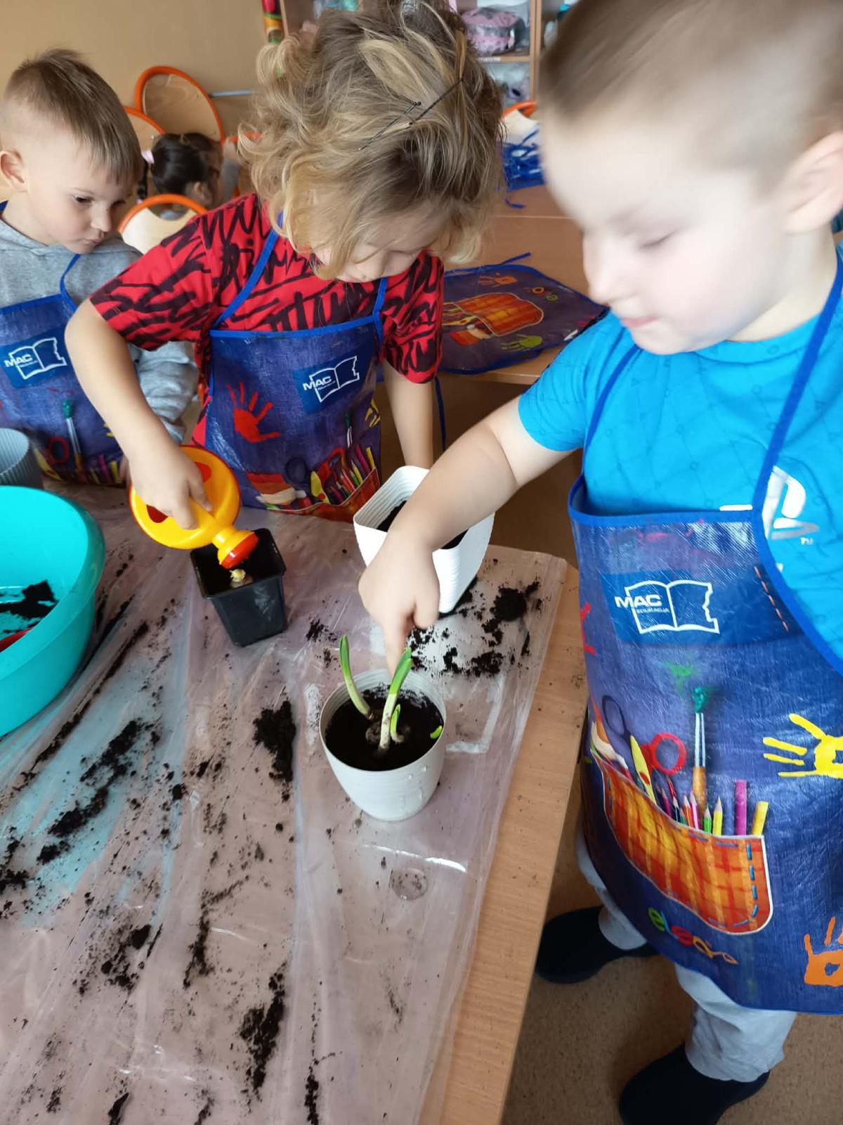 Podczas zajęć 3,4- latki posadziły w doniczkach cebulki wiosennych kwiatów. Mali ogrodnicy pracowali z wielkim entuzjazmem i zainteresowaniem. Teraz będziemy wspólnie dbać o sadzonki i czekać na efekty pracy małych rączek :-)