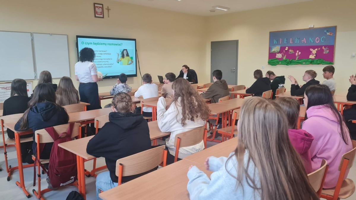 Podczas spotkania uczniowie dowiedzieli się czym jest konto bankowe i jak go można załozyć, na co zwrócić uwagę zakładając konto, jak bezpiecznie korzystać z bankowości internetowej i mobilnej. Omówiono najczęstsze zagrożenia, takie jak phishing, skimming, kradzież danych, fałszywe strony internetowe oraz próby wyłudzenia informacji. Szczególną uwagę zwrócono na konieczność stosowania silnych, unikalnych haseł oraz uwierzytelniania dwuskładnikowego.
